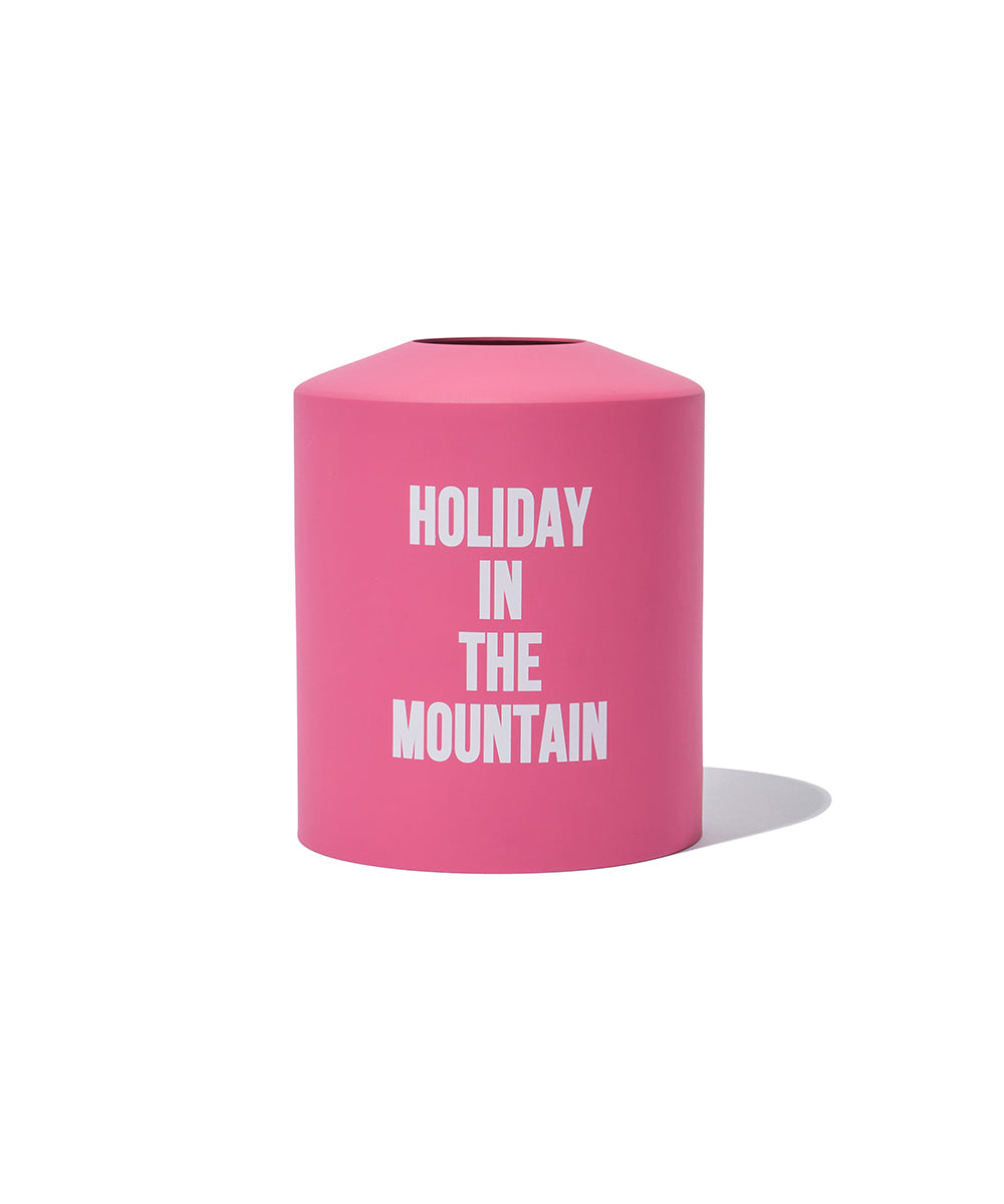 2025年度はピンクです。Camp Crew名義のOD缶カバーの第2弾は、シャーベットボールに由来するパステルピンク。描かれる文字は”水源の森 キャンプ・ランド”のスローガン”HOLIDAY IN THE MOUNTAIN”!