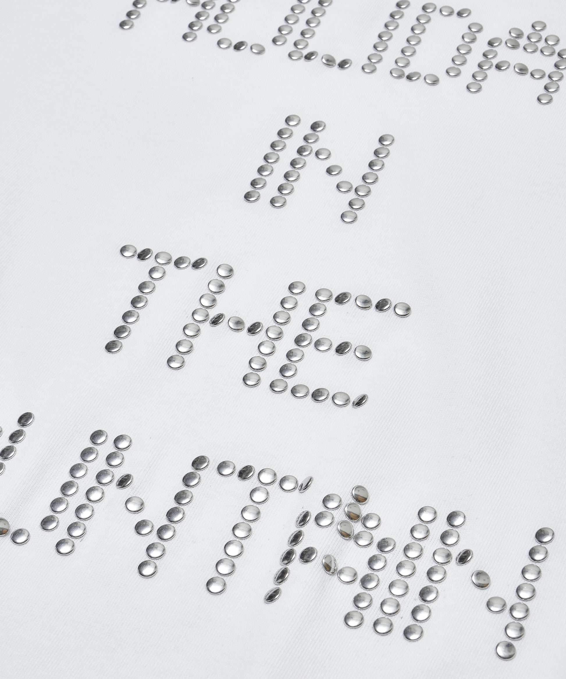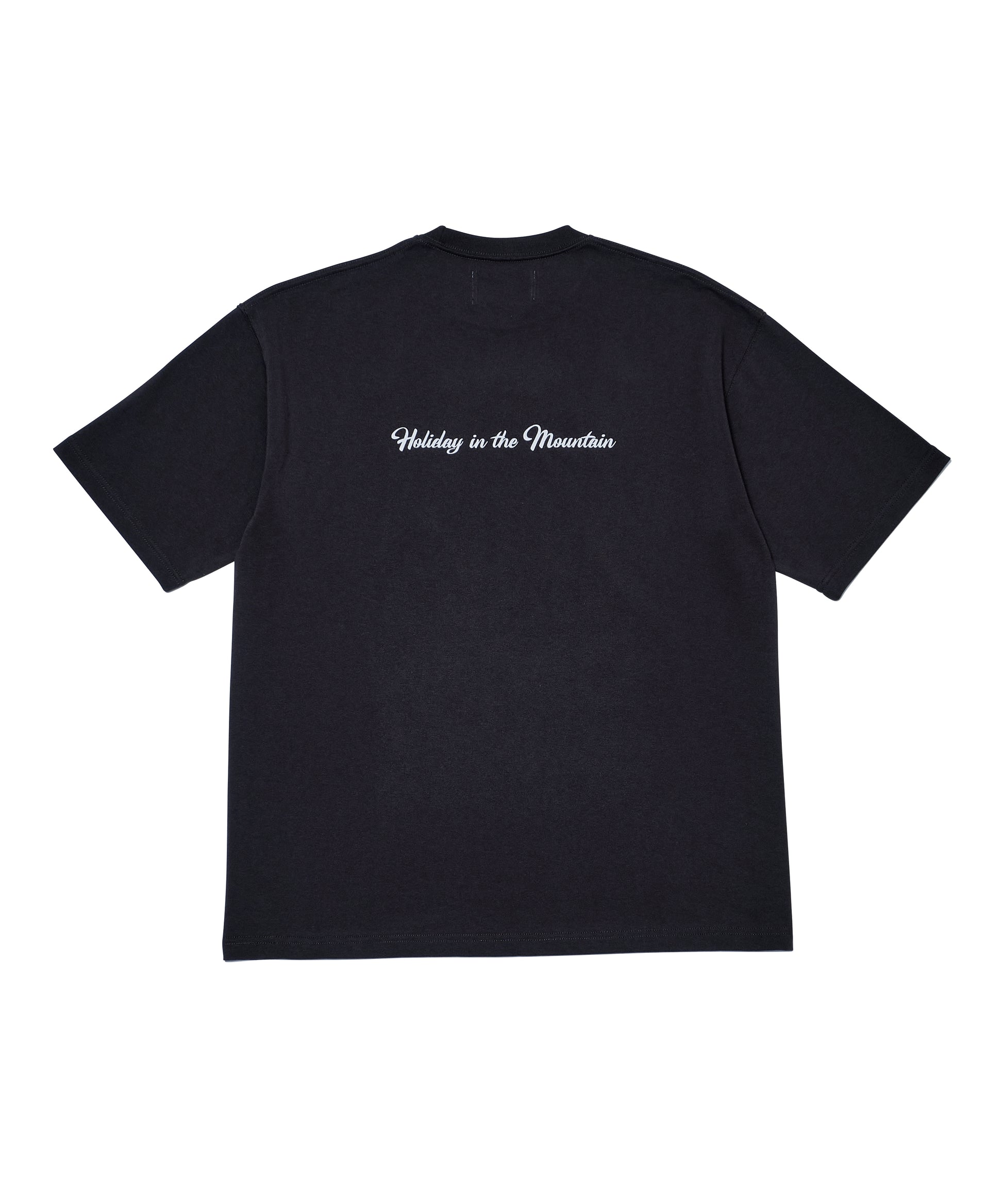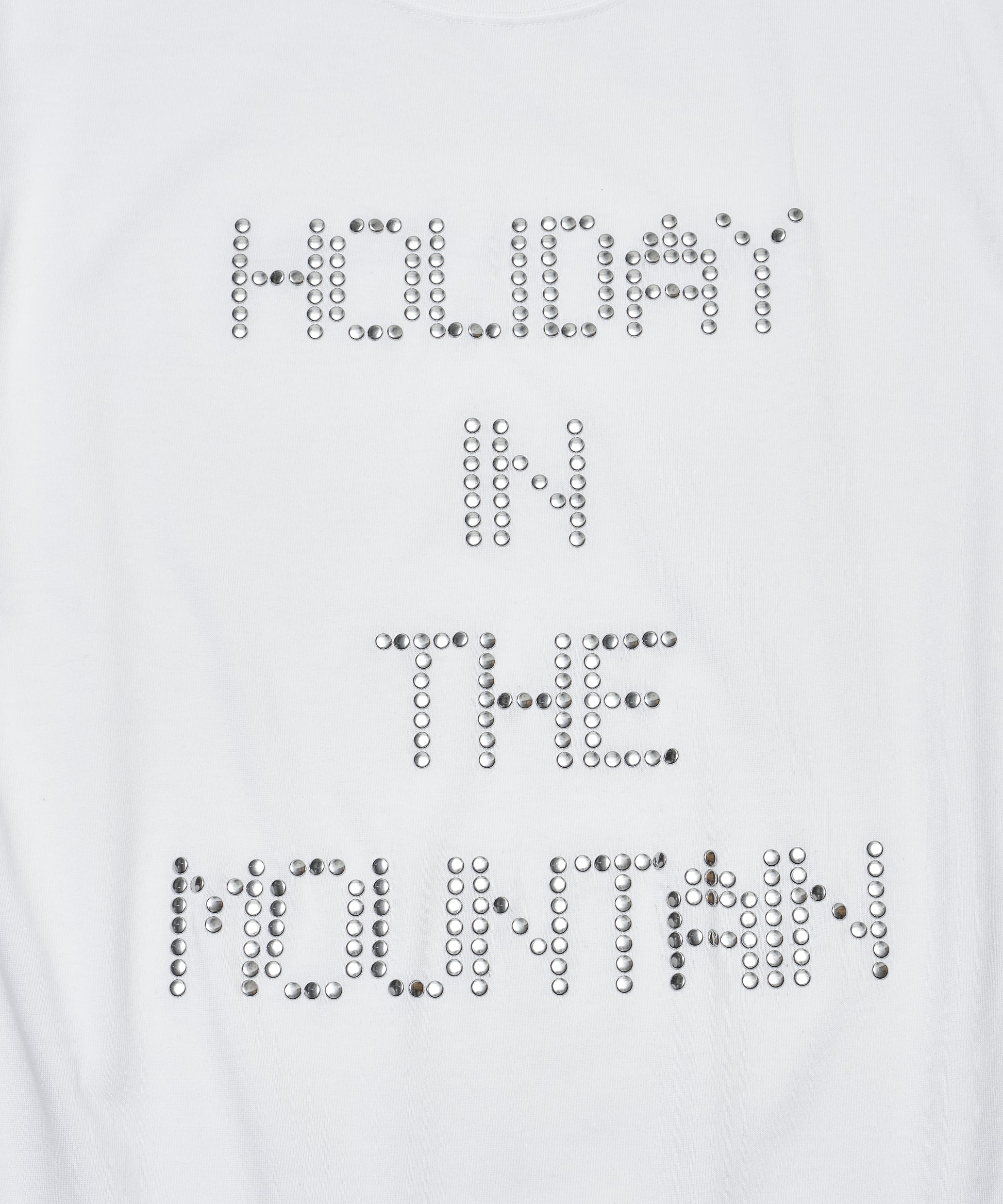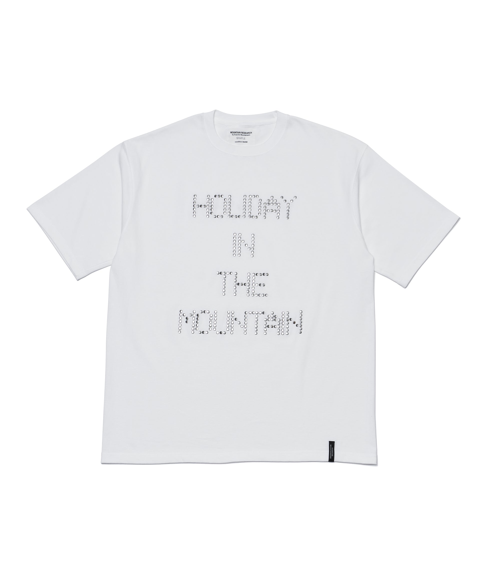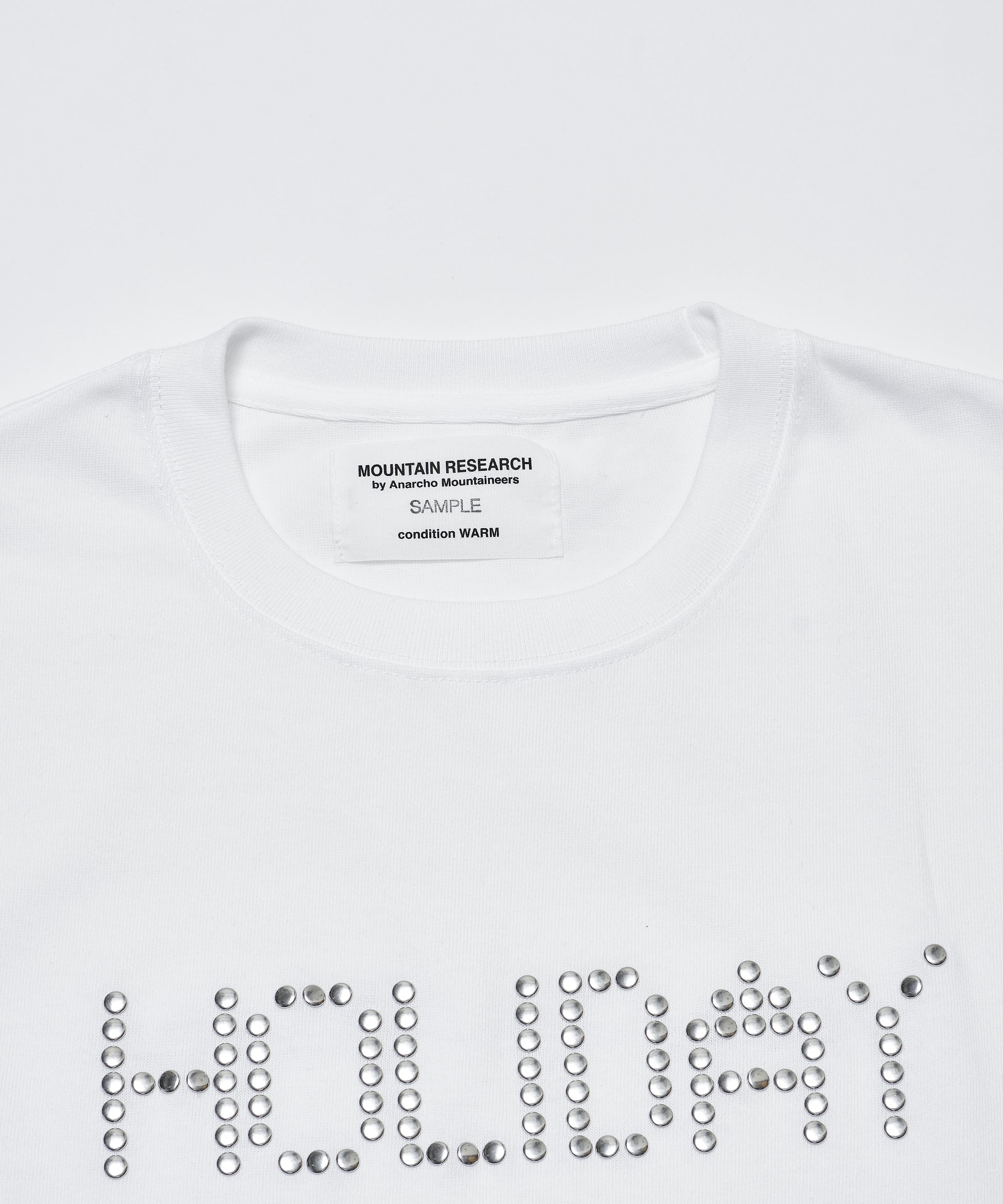 今シーズンのフィーチャーアイテムのひとつが、こちらの”Rivetee”。ブランドスローガンである“HOLIDAY IN THE MOUNTAIN”を、フロント全面にカシメを打ち込んだ意欲作です。多数のカシメが存在感を放つ、ブランドらしさあふれる一枚。9.1oz ヘビーウェイトコットンのビッグシルエットボディを採用しています。
