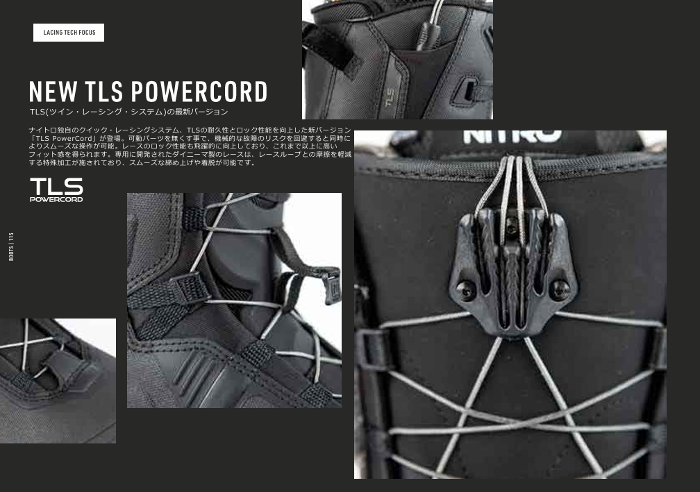 今シーズンのコレクションはStep On®に対応したニューモデルが追加されただけでなく、ほぼ全モデルに細かいアップグレードが施されており、既存のナイトロブーツテクノロジーも、より効果的に機能するように改善されています。